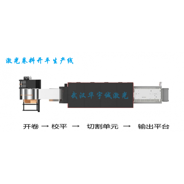 整套采用激光切割技術(shù)的開(kāi)卷落料生產(chǎn)設(shè)備,由上料臺(tái)車、開(kāi)卷機(jī)、校平機(jī)、緩沖活套、伺服送料機(jī)、激光切割裝置、切割平臺(tái)、廢料處理系統(tǒng)、液壓氣動(dòng)系統(tǒng)及電氣控制系統(tǒng)組成。